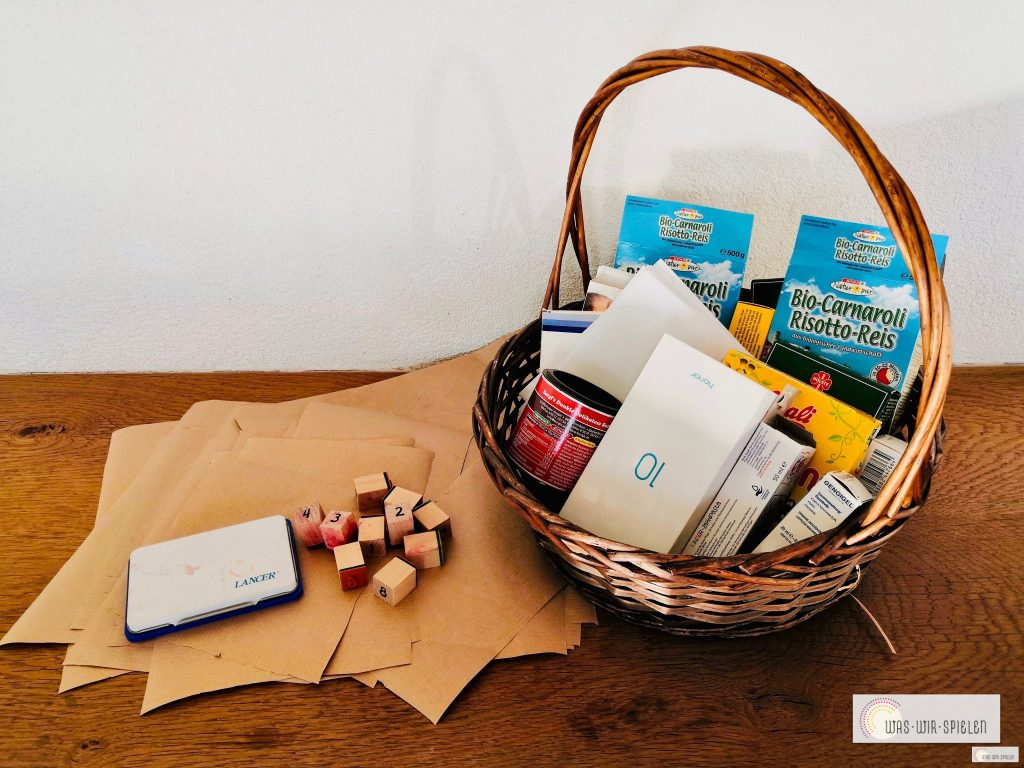 - 24 leere Pappschachteln (wir haben einige durch BriefumschlÀge mit Gutscheinen ersetzt)