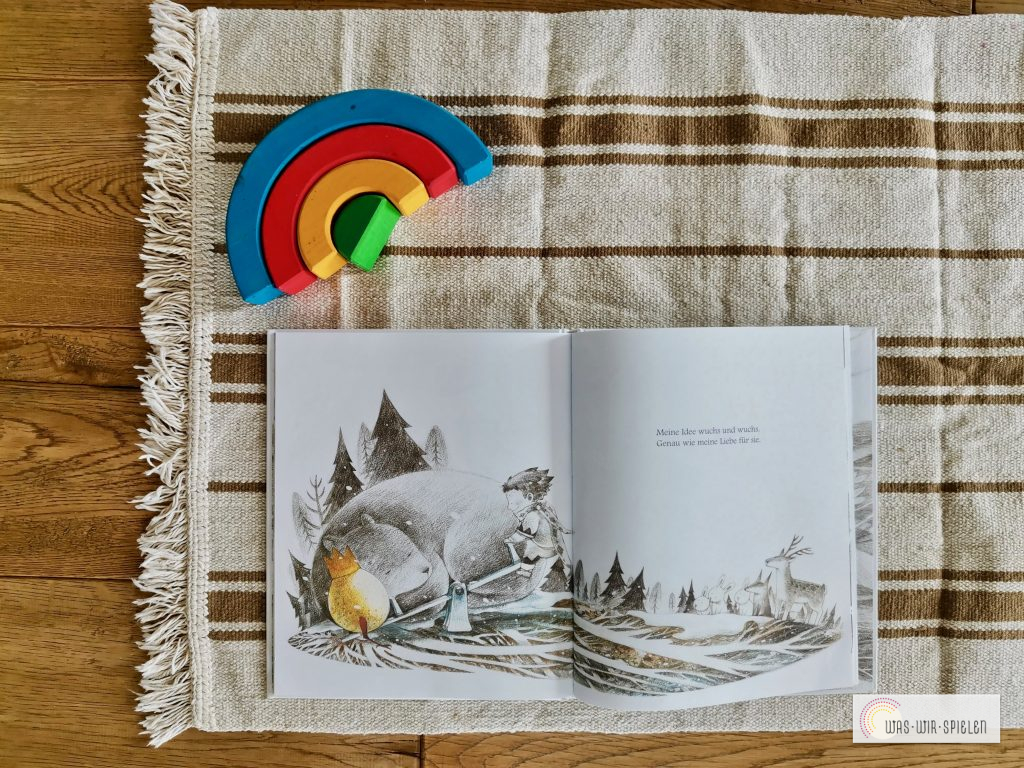 Das Buch beinhaltet eine so motivierende Botschaft umrahmt von wunderschönen, schlichten und in weiß gehaltenen Illustrationen von Mae Besom. Die Idee wird als goldenes Ei dargestellt, das finden die Kinder ganz wunderbar und können sich gut mit der Geschichte identifizieren.