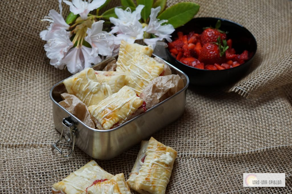 Unsere Erdbeertaschen mit weißer Schokolade sind sehr einfach zubereitet und treffen genau den Geschmack unserer Familien 😉