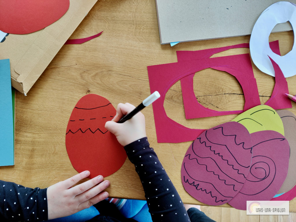 Tipp: Man kann die ausgeschnittenen Teile sammeln und später zu kreativen neuen Ostereiern zusammenkleben! Ihr könnt die Schnipsel aber auch zu kreativen Girlanden auffädeln – eine weitere feinmotorische Übung!